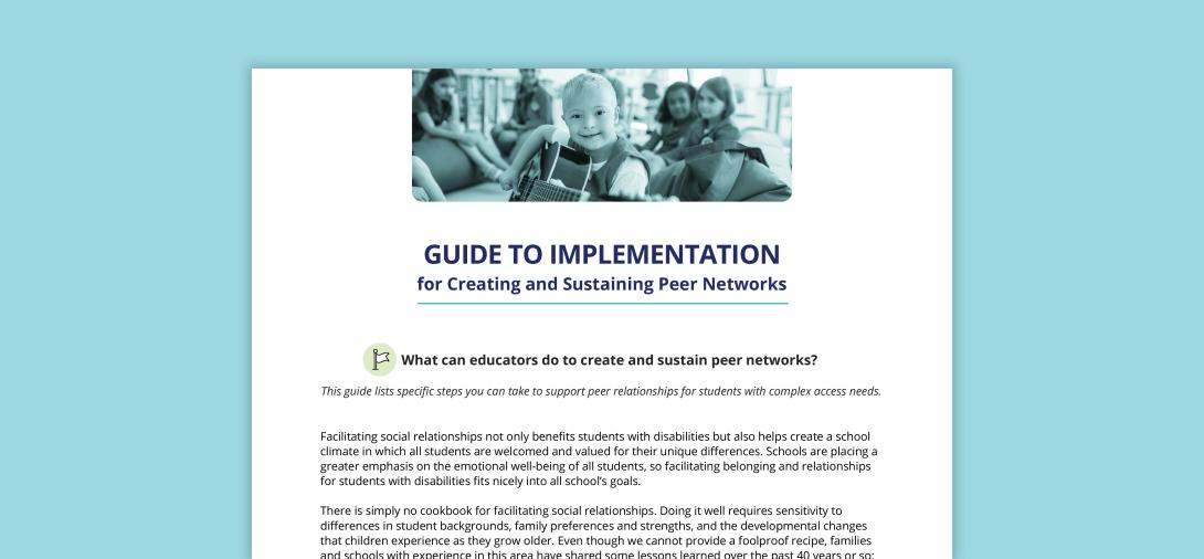 Facilitating social relationships not only benefits students with disabilities but also helps create a school climate in which all students are welcomed and valued for their unique differences. Schools are placing a greater emphasis on the emotional well-being of all students, so facilitating belonging and relationships for students with disabilities fits nicely into all school’s goals.