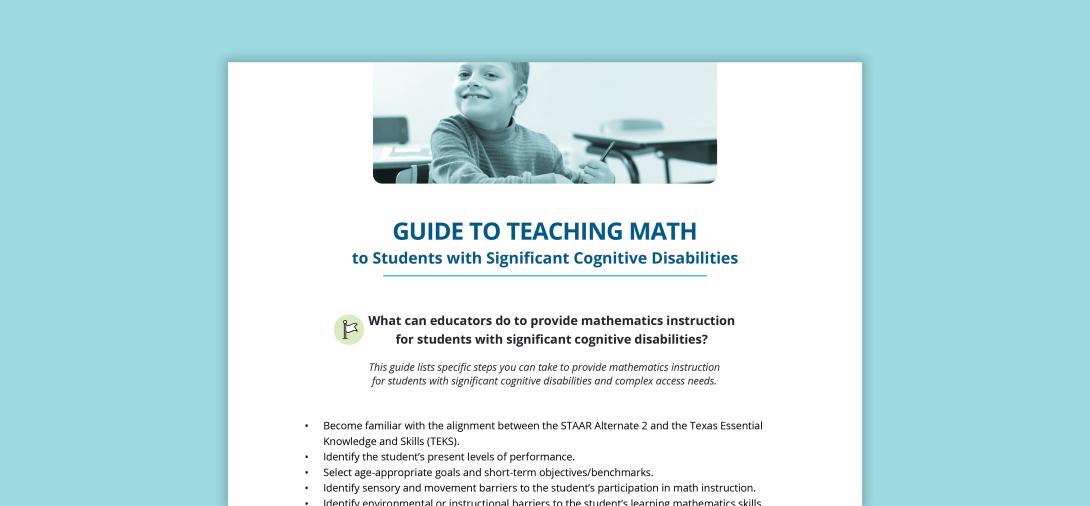 This guide lists specific steps you can take to provide mathematics instruction for students with significant cognitive disabilities and complex access needs.