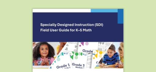 The SDI Field User Guides are intended to be a bridge between existing student support plans and the instructional content available within the high quality instructional materials. Each section of the document provides ways to connect high quality instructional materials to student plans and leverage the tools found in the high quality instructional resource. This document provides multiple ways to approach and plan for the provision of SDI and presents multiple lenses through which readers can examine the connections between the tools and content in high quality instructional resources and the components of SDI.