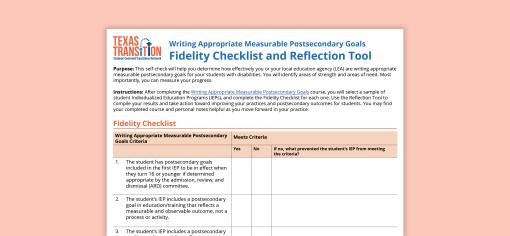 Writing Appropriate Measurable Postsecondary Goals Fidelity Checklist and Reflection Tool