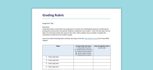 Sample Grading Rubric for Students with Complex Access Needs