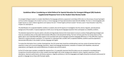 Emergent Bilingual (EB) Student Data Review - Supplemental Form