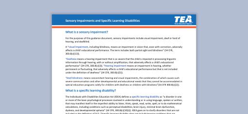 State Guidance, Blind/Visually Impaired, Deaf/Hard of Hearing, Child Find, Evaluation