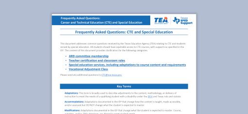 State Guidance, Instruction, ARD/IEP Supports, Transition
