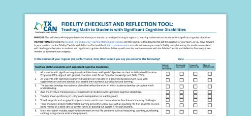 Fidelity Checklist and Reflection Tool: Teaching Math to Students with Significant Cognitive Disabilities